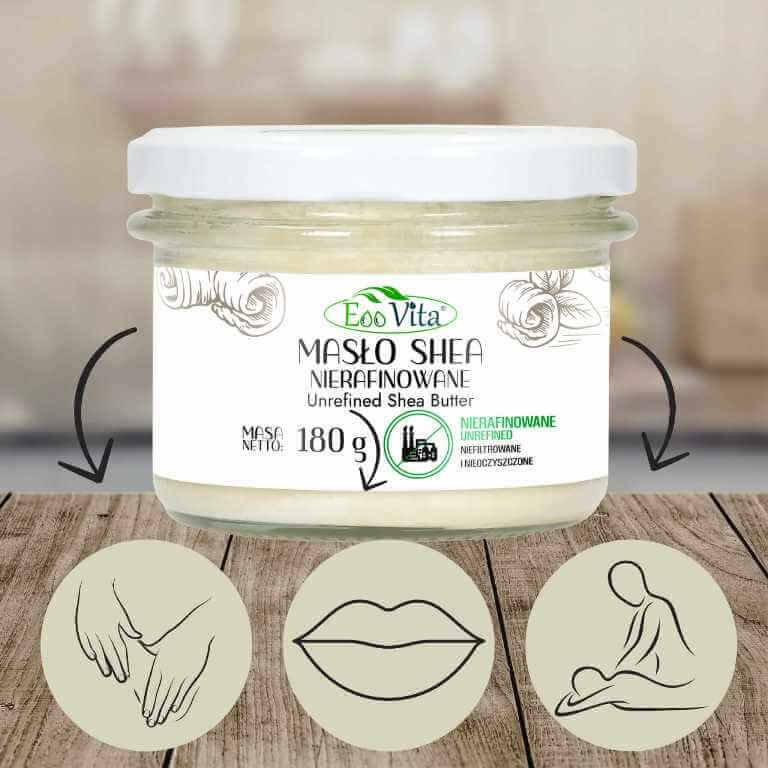 Masło shea nierafinowane 180 g i 400 g to 100% naturalny surowiec roślinny o zwartej konsystencji. Mięknie pod wpływem ciepła dłoni, dlatego łatwo się rozprowadza i sprawdzi się w codziennej pielęgnacji ciała oraz jako baza do domowych kosmetyków.