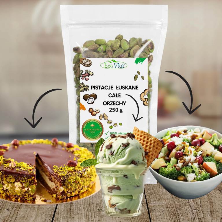 Pistacje wyróżniają się przyjemnie miękką, a jednocześnie zwartą konsystencją, dlatego łatwo je kroić, kruszyć lub blendować. Ich naturalny smak dobrze komponuje się z deserami, kremami oraz ciastami, jednak równie dobrze pasuje do sałatek, sosów czy dań obiadowych.