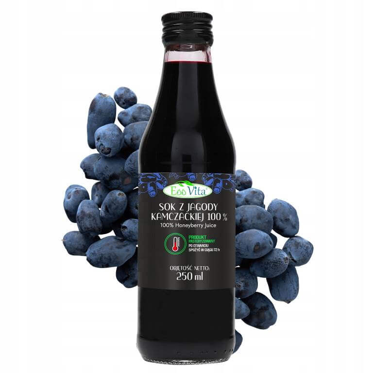 Sok z jagody kamczackiej 100% 250 ml to pasteryzowany produkt o intensywnym smaku i ciemnej barwie. Sprawdzi się w smoothie, deserach, napojach oraz jako baza do sosów owocowych.